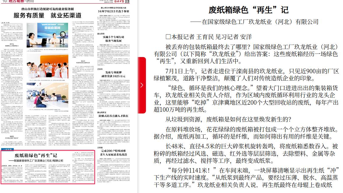 河北日报:废纸箱绿色“再生”记 ——在国家级绿色工厂玖龙纸业(河北)有限公司