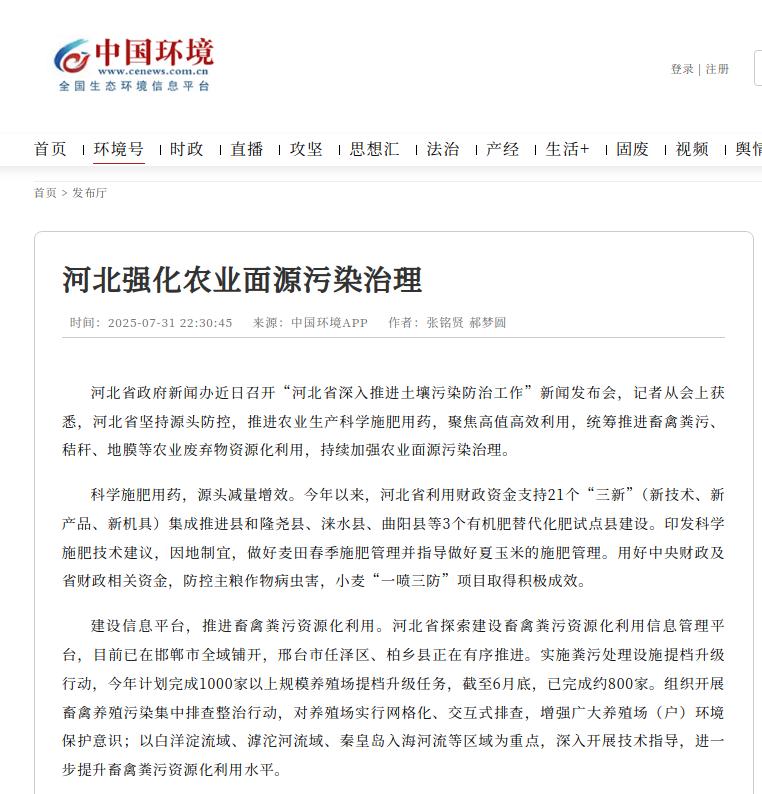 中国环境客户端:河北强化农业面源污染治理