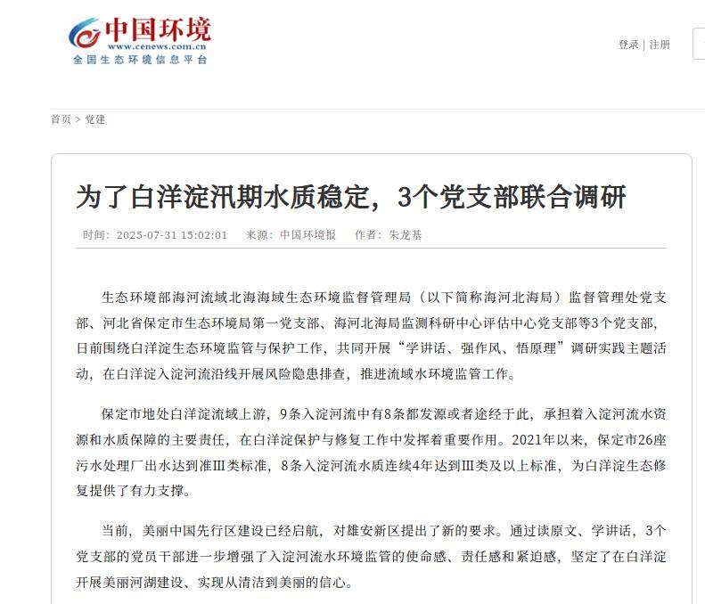 中国环境客户端:为了白洋淀汛期水质稳定,3个党支部联合调研