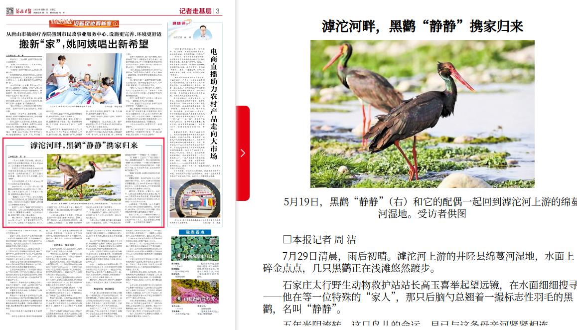 河北日报:滹沱河畔,黑鹳“静静”携家归来