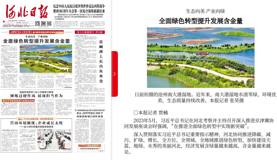 河北日报:生态向美 产业向绿 全面绿色转型提升发展含金量