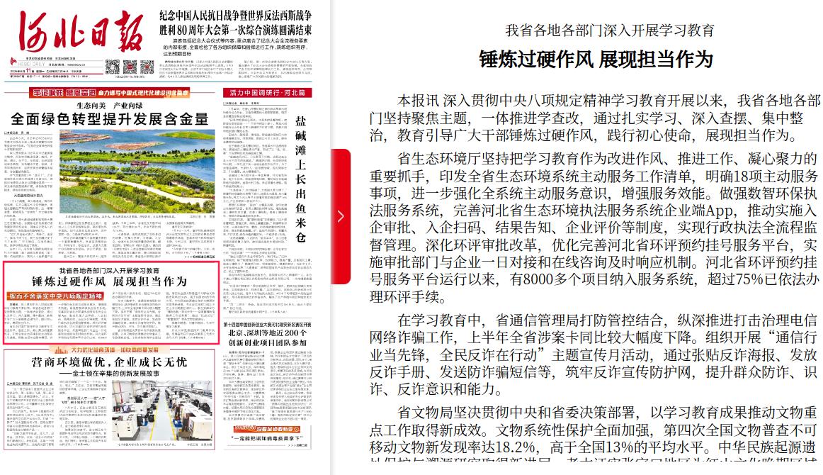 河北日报:我省各地各部门深入开展学习教育 锤炼过硬作风 展现担当作为
