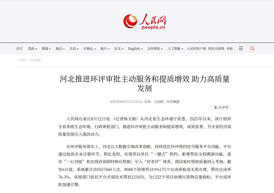 人民网:河北推进环评审批主动服务和提质增效 助力高质量发展