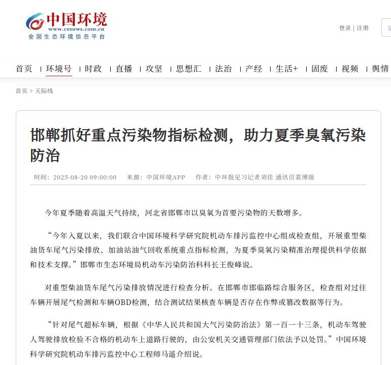 中国环境客户端:邯郸抓好重点污染物指标检测,助力夏季臭氧污染防治