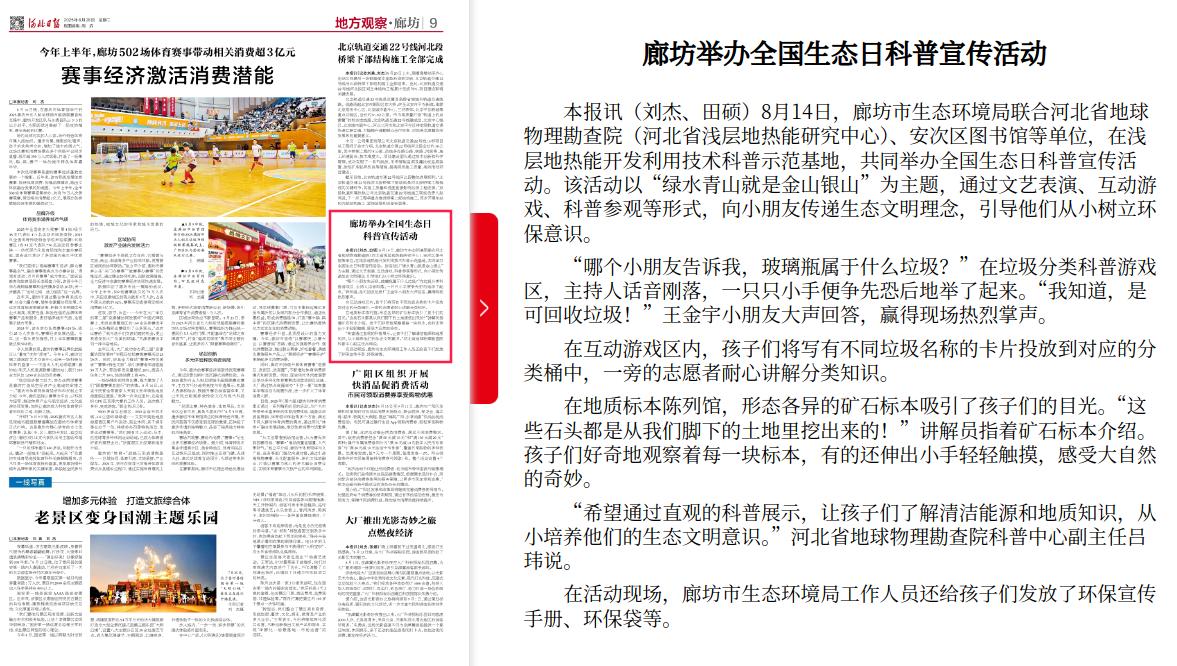 河北日报:廊坊举办全国生态日科普宣传活动