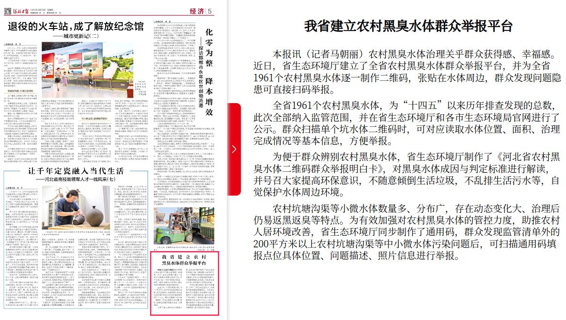 河北日报:我省建立农村黑臭水体群众举报平台