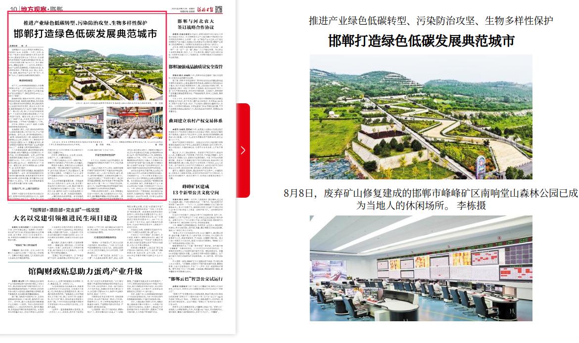 河北日报:推进产业绿色低碳转型、污染防治攻坚、生物多样性保护 邯郸打造绿色低碳发展典范城市