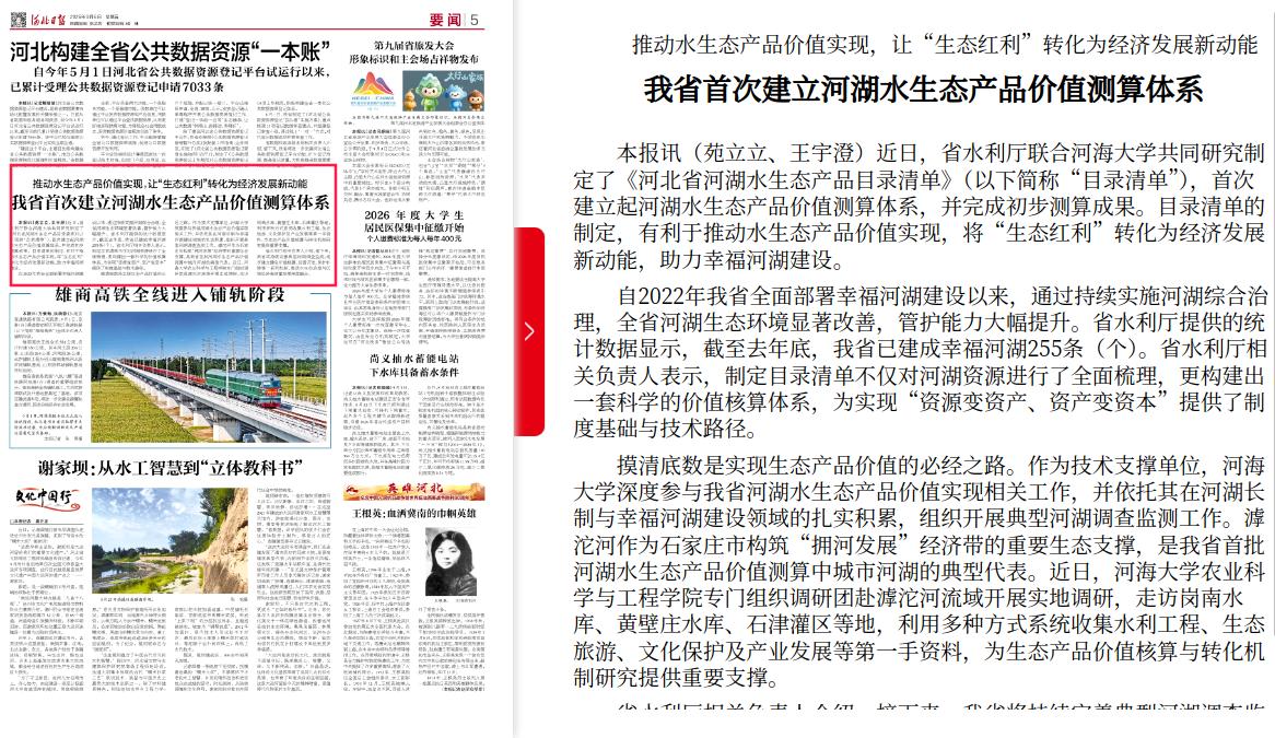 河北日报:推动水生态产品价值实现,让“生态红利”转化为经济发展新动能 我省首次建立河湖水生态产品价值测算体系