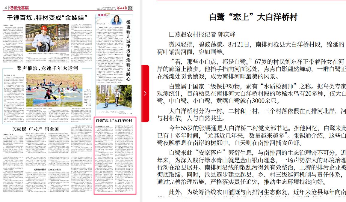 河北日报:白鹭“恋上”大白洋桥村