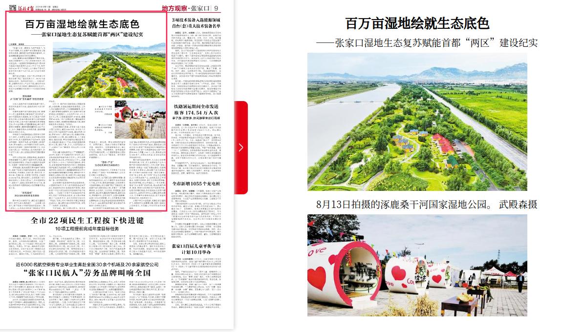 河北日报:百万亩湿地绘就生态底色 ——张家口湿地生态复苏赋能首都“两区”建设纪实