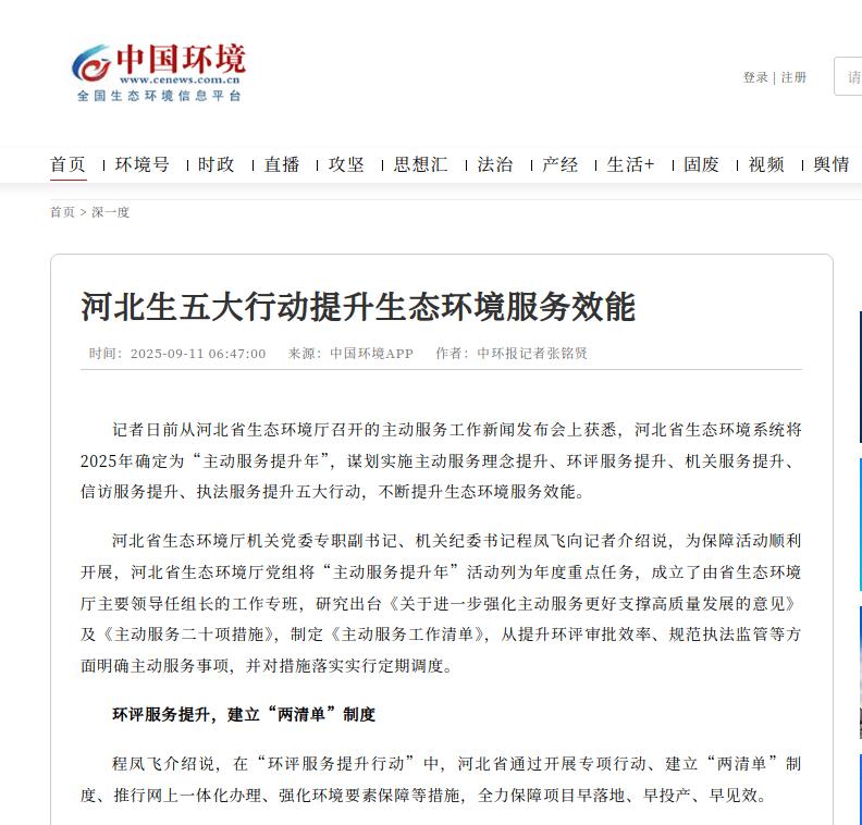 中国环境客户端:河北五大行动提升生态环境服务效能