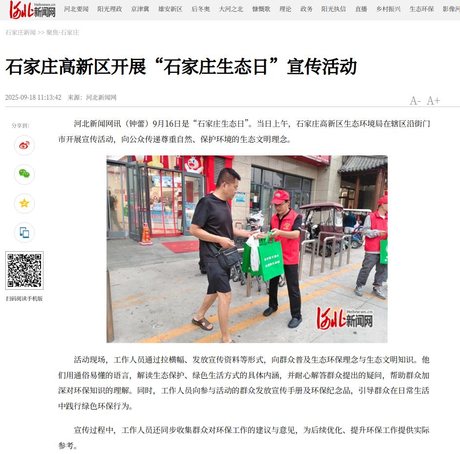 河北新闻网:石家庄高新区开展“石家庄生态日”宣传活动