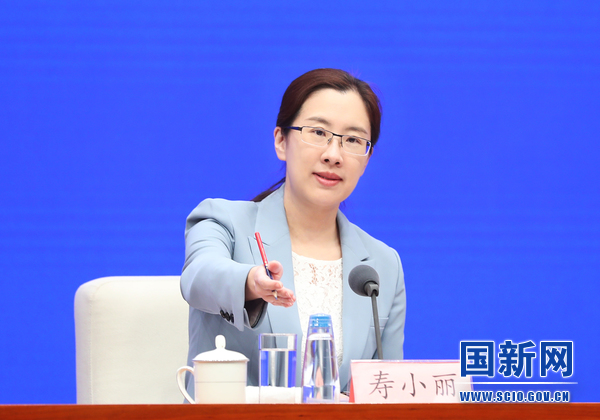 国务院新闻办新闻局副局长、新闻发言人寿小丽邀请记者提问(刘健 摄)