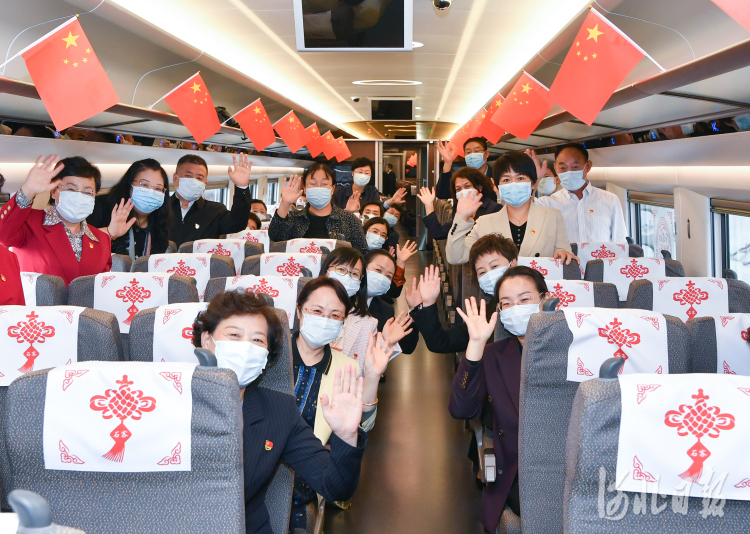 10月13日上午,我省出席党的二十大代表集体乘火车赴京。河北日报记者赵海江摄