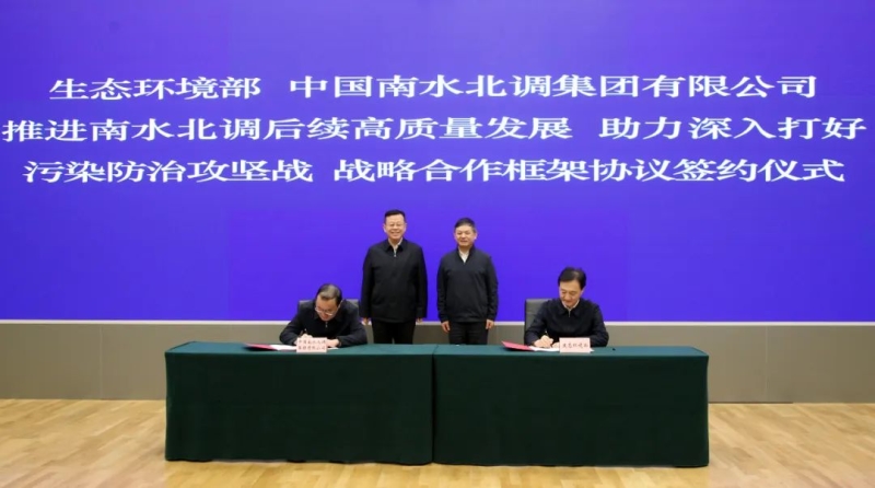 黄润秋指出,南水北调工程是优化我国水资源配置、促进经济社会可持续发展的重大战略性基础设施,是跨流域区域配置水资源国家水网的骨干工程,做好工程相关生态环境保护具有重大意义。习近平总书记高度重视并多次作出重要指示批示,明确要求持续抓好输水沿线区和受水区的污染防治和生态环境保护工作。双方签署战略合作框架协议,是贯彻落实习近平总书记重要指示批示精神和党中央决策部署的具体体现,是推进南水北调后续工程高质量发展的必然要求,也是新时代新征程深入打好污染防治攻坚战的有力举措。长期以来,双方认真贯彻落实党中央决策部署,与相关部门及各地方共同努力,推动水源区及沿线水生态环境质量发生重大转折性变化,为国家区域重大战略实施提供了坚强的水质安全保障。下一步,要共同抓好协议落实,协作推动重大合作事项,持续做好后续工程相关工作,构建信息互联互通机制,加强突发环境事件应对处置和水质安全保障,推动南水北调工程在生态文明建设、美丽河湖保护与建设、践行“三水统筹”等方面发挥支撑和示范作用。