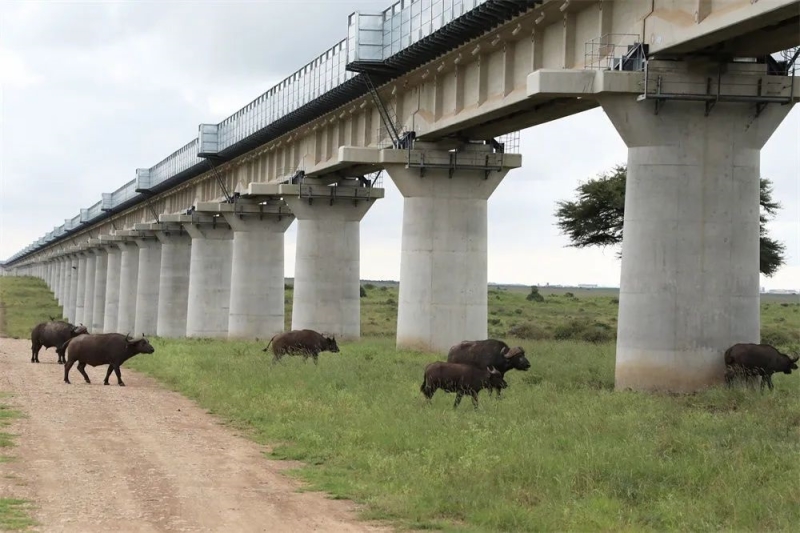 在“一带一路”建设中,生物多样性保护成为重要内容。中非共建的肯尼亚内马铁路是其中典型。该铁路采用特大桥全程穿越内罗毕国家公园方案,最低桥墩也超过6米,让长颈鹿也能“昂首通过”;特大桥护栏两侧安装声屏障,极大降低火车通过时的噪音。