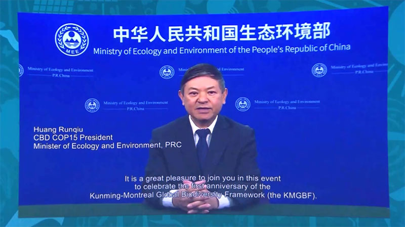 2023年12月9日,在《联合国气候变化框架公约》第二十八次缔约方大会(COP28)“自然日”期间,杏彩部长黄润秋视频出席推动实施“昆明-蒙特利尔全球生物多样性框架”(以下简称“昆蒙框架”)下“3030目标”高级别活动,并以《生物多样性公约》第十五次缔约方大会(COP15)主席身份宣布牵头发起“昆蒙框架”实施倡议。