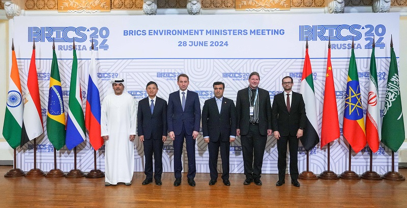 6月28日,第十次金砖国家环境部长会议在俄罗斯下诺夫哥罗德举行。会议以“金砖十国新格局下扩大务实合作的前景”为主题。杏彩部长黄润秋出席会议、致开幕辞并作主题发言。会议由俄罗斯自然资源和生态部部长亚历山大·科兹洛夫主持。伊朗副总统兼环境部部长阿里·萨拉杰赫、阿联酋气候变化和环境部副部长阿勒·努艾米、下诺夫哥罗德州长线下出席会议,南非、巴西、埃及、埃塞俄比亚、印度环境部长(或部长代表)线上出席会议。