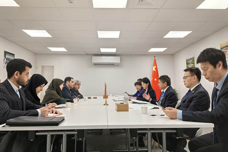 会见安萨里时,黄润秋介绍了中方在发展可再生能源、适应气候变化、工业污染物减排、废弃物全链条管理等方面采取的政策、措施以及取得的成效,表示愿与伊方继续加强交流合作。安萨里赞赏中方在生态环境保护、应对气候变化领域取得的成就,表示愿与中方继续强化相关领域技术交流与务实合作,提高环境治理和应对气候变化能力。