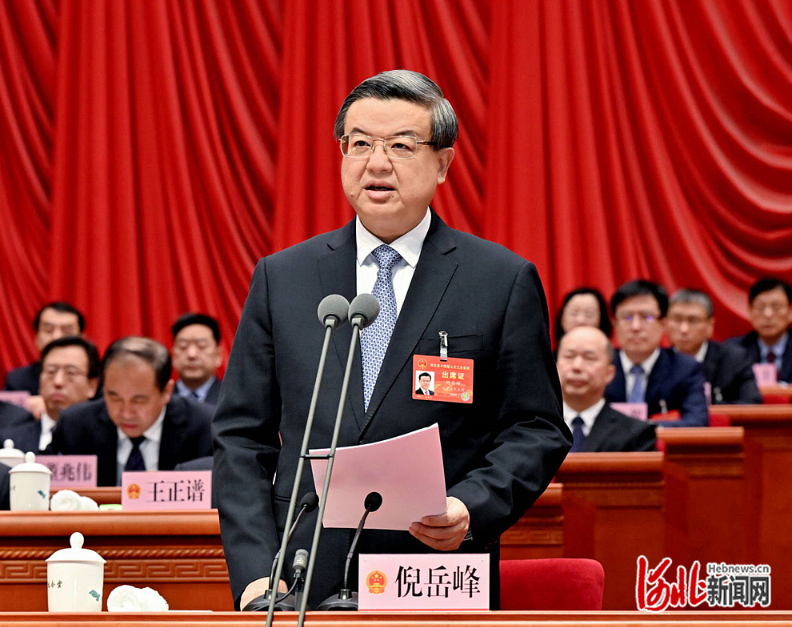 上午9时,倪岳峰宣布:河北省第十四届人民代表大会第三次会议开幕。会场全体起立,高唱国歌。
