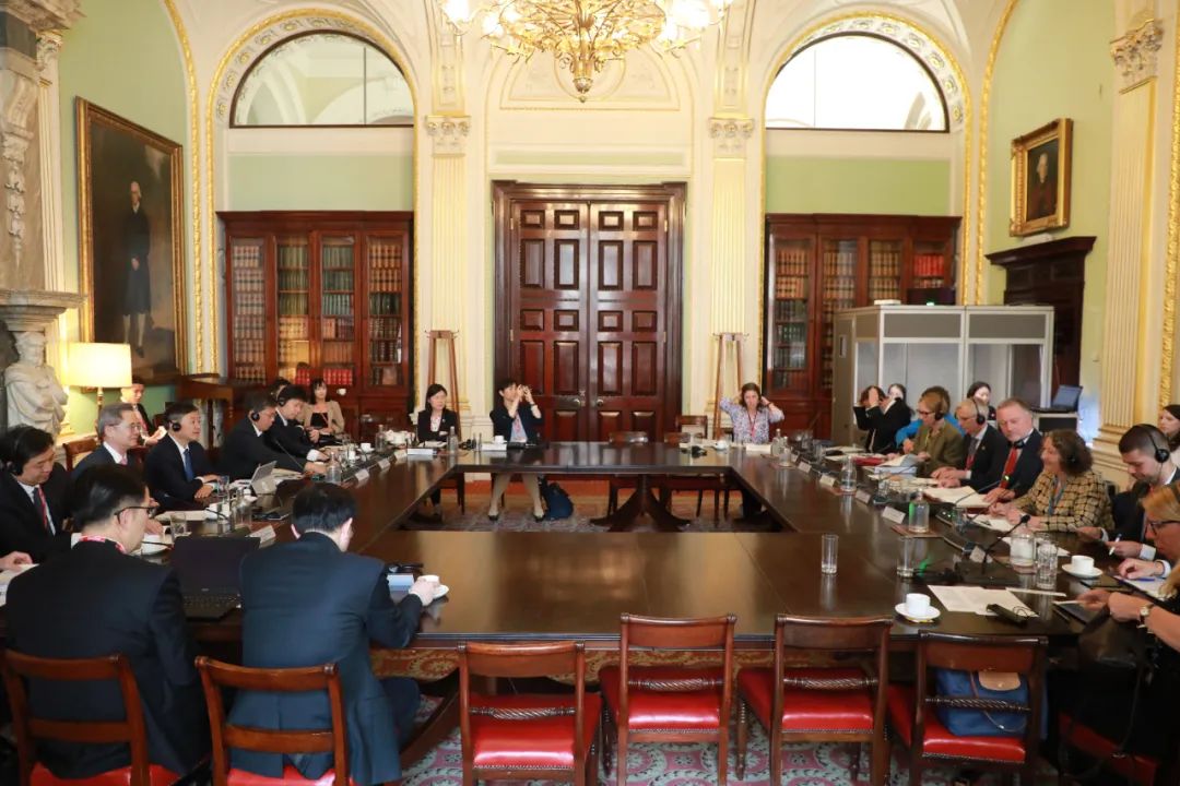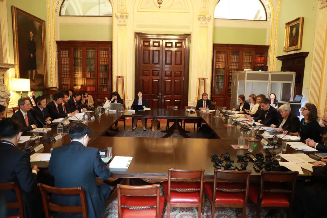 在下午举行的中英环境部长对话会上,双方围绕环境污染防治最新进展、塑料污染国际文书谈判、生物多样性保护等议题进行了深入交流。英国自然事务特别代表戴维丝主持对话。