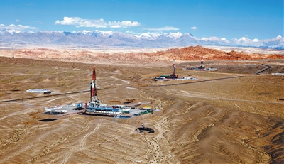 塔里木油田全面掌握8000米超深层勘探开发技术,累计完钻超8000米深井58口,目前已建成我国最大超深层油气生产基地、全球最大超深超高压天然气开发基地。图为塔里木油田超深层油气勘探开发现场。