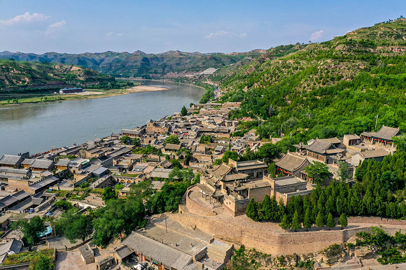 这是被誉为“九曲黄河第一镇”的山西省吕梁市临县碛口古镇风光(无人机照片,2022年5月24日摄)。新华社记者 曹阳 摄