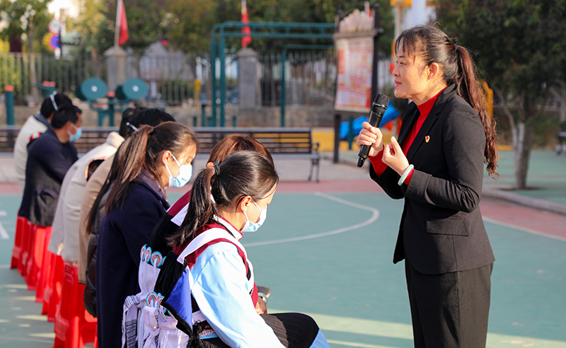 12月14日,云岭百姓宣讲团到云南省丽江市玉龙县黄山街道开展党的二十大精神宣讲。这是宣讲团成员杨丽梅在宣讲。新华社发(李佳健 摄)