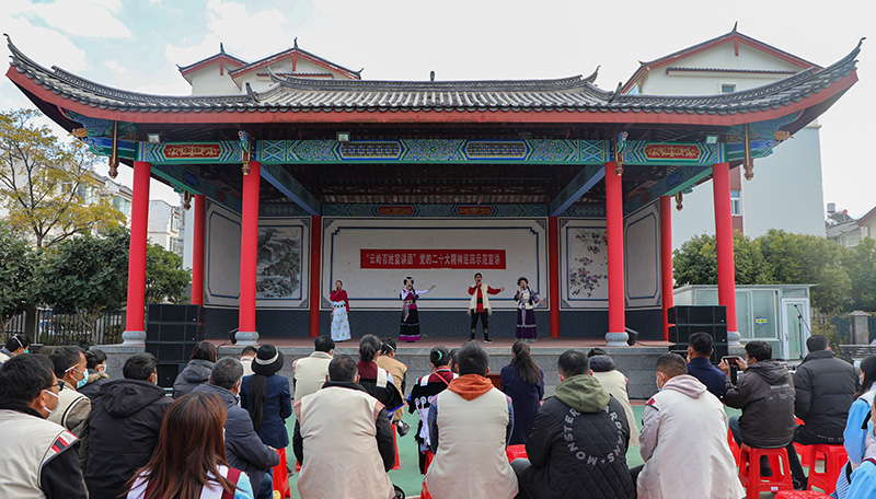 12月14日,云岭百姓宣讲团到云南省丽江市玉龙县黄山街道开展党的二十大精神宣讲。新华社发(李佳健 摄)