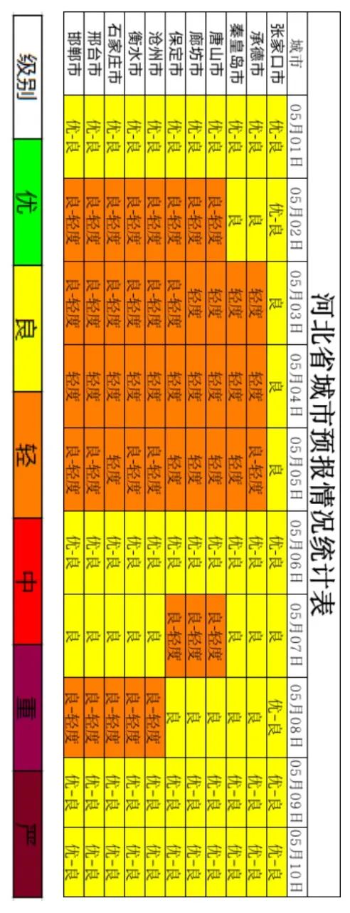 经河北省生态环境应急与重污染天气预警中心与中国环境监测总站、省气象灾害防御和环境气象中心联合会商,预计2022年5月上旬(1日~10日),整体扩散条件一般,其中2日~5日,我省大部地区转为偏南风,气温显著回升,天空云量较少,气象条件有利于臭氧生成,部分城市可能出现O3轻度污染过程。