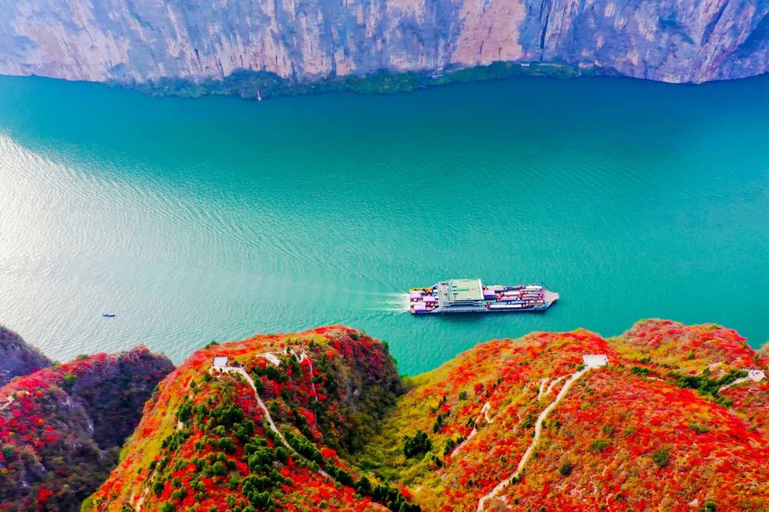 作品描述:2019年12月8日拍摄于重庆奉节长江瞿塘峡,初冬深秋的长江三峡,红叶遍山,船只行驶在长江三峡犹如画中行。