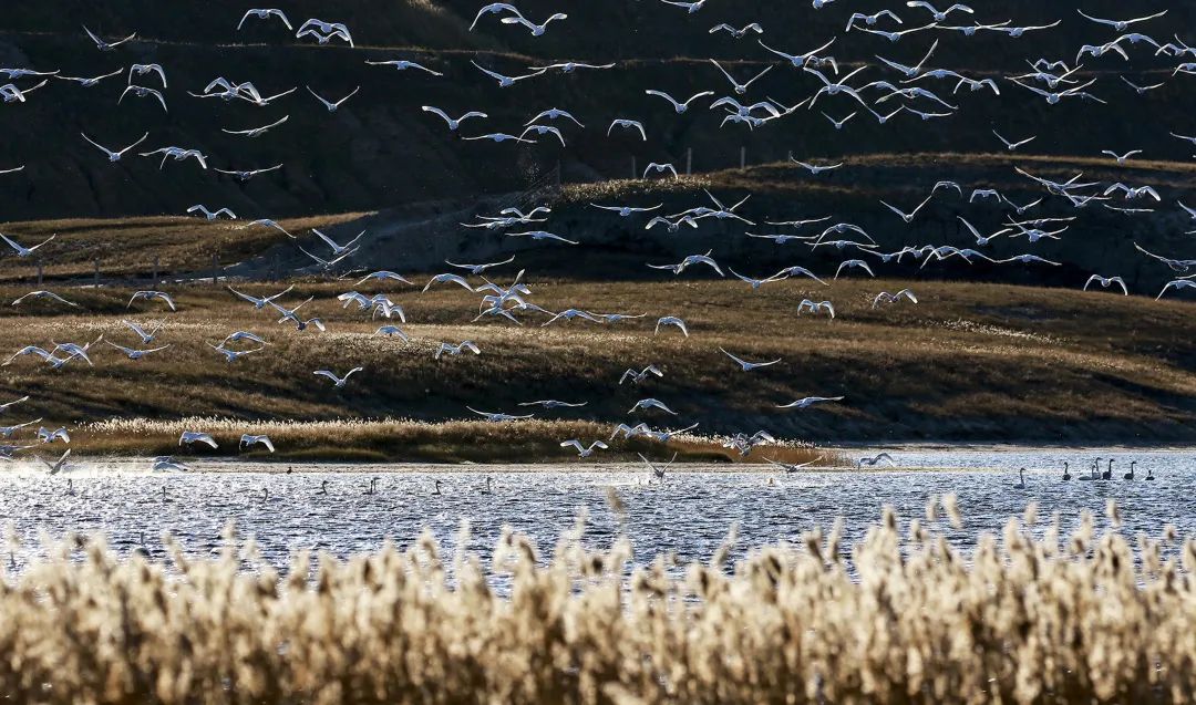 作品描述:每年的春秋季节,天鹅都会来到我的家乡,内蒙古霍林郭勒市。这里的自然生态越来越好。
