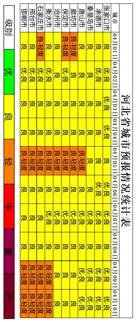 经河北省生态环境应急与重污染天气预警中心与中国环境监测总站和省环境气象中心联合会商,预计2022年4月上旬(1日~10日),受南北风交替影响,湿度整体偏低,大气扩散条件总体有利,空气质量以优良为主,其中5日、9日~10日,个别城市午后温度升高、风力偏小,可能出现O3临界污染。