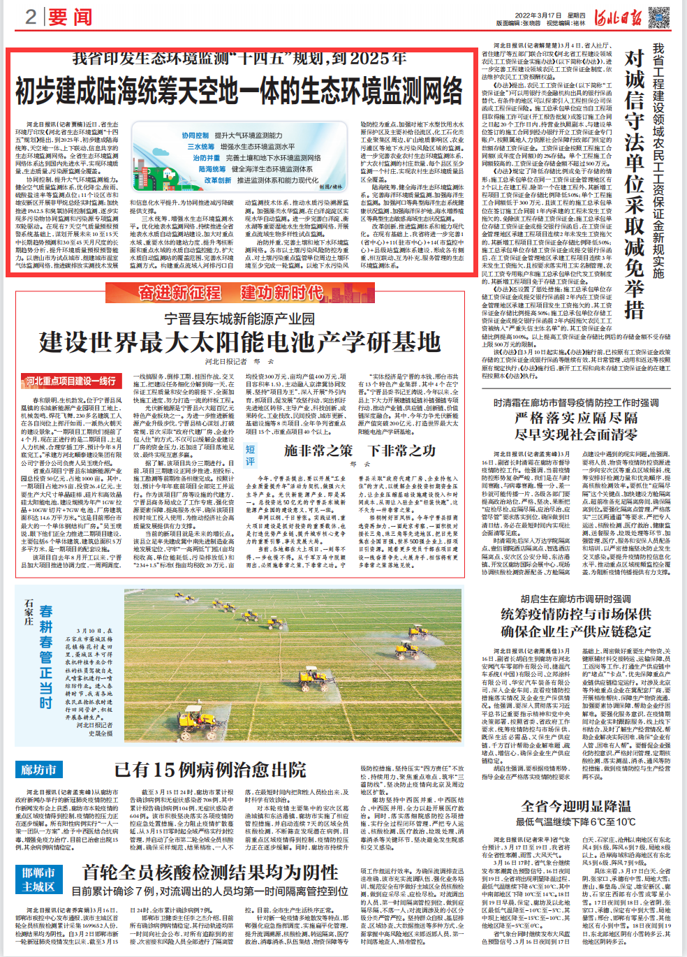 河北:到2025年初步建成陆海统筹天空地一体的生态环境监测网络(河北日报)