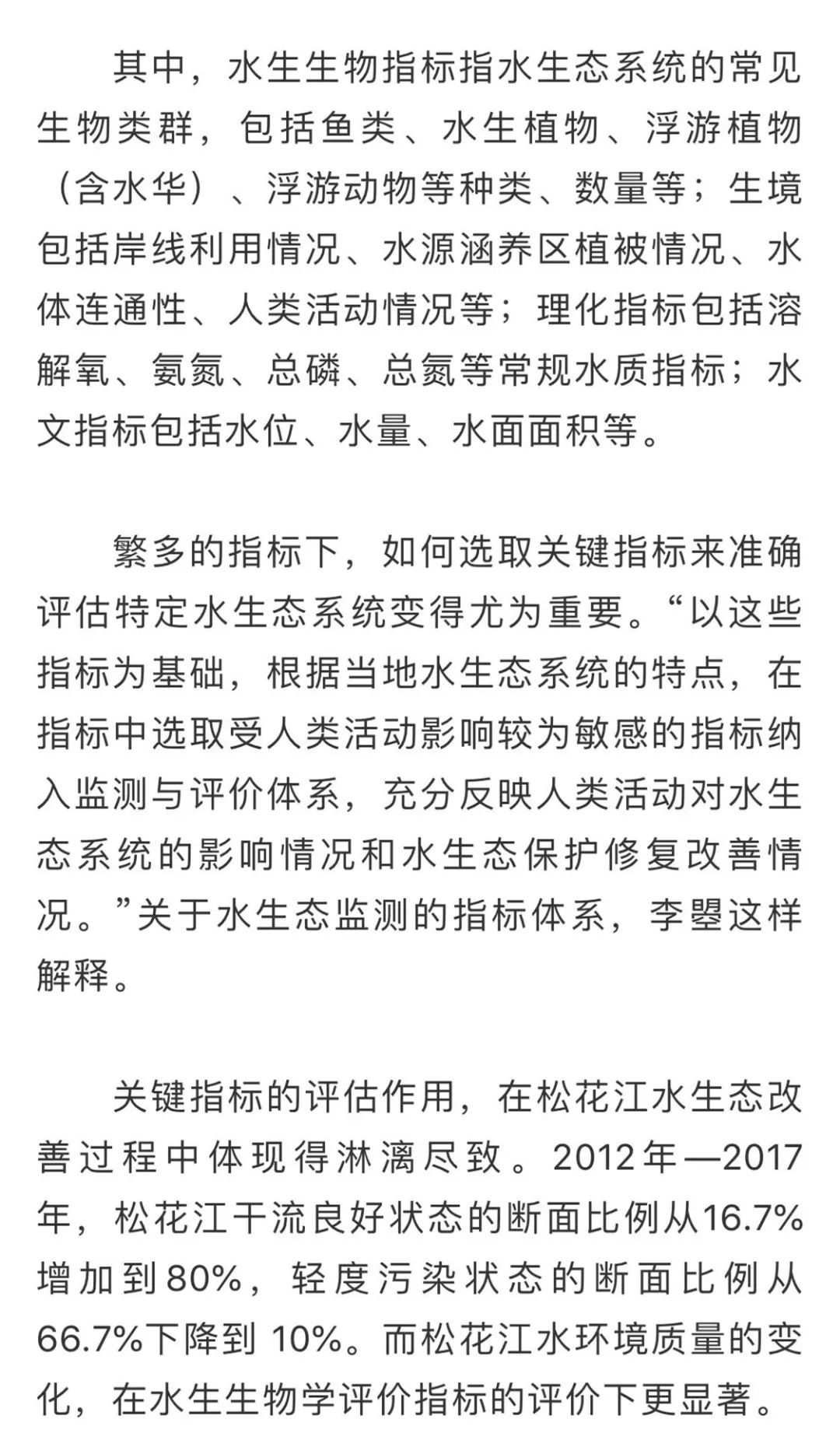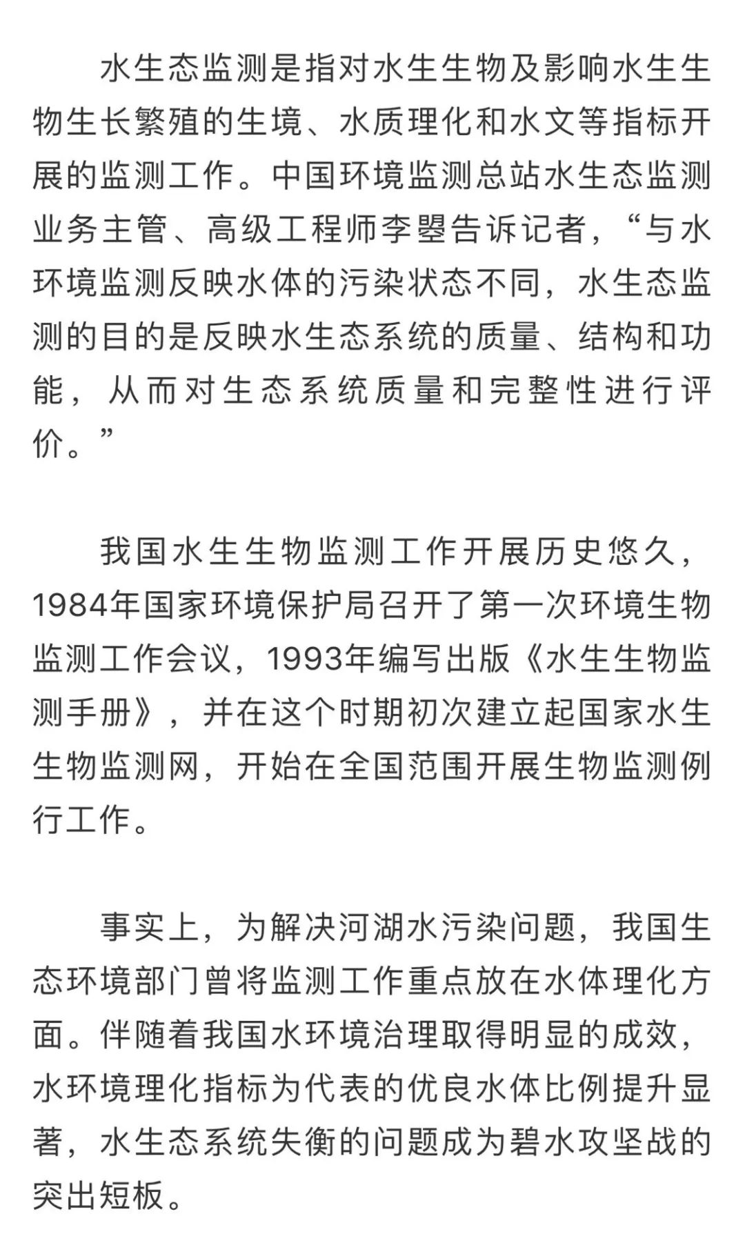 从之前水环境质量监测重点关注COD、氨氮等指标,到现在水生态监测把鱼、水生植物乃至浮游生物纳入监测范围。围绕水生生物开展的水生态监测工作,如何选取关键指标此前试点效果如何围绕这些问题,记者采访了相关专家。