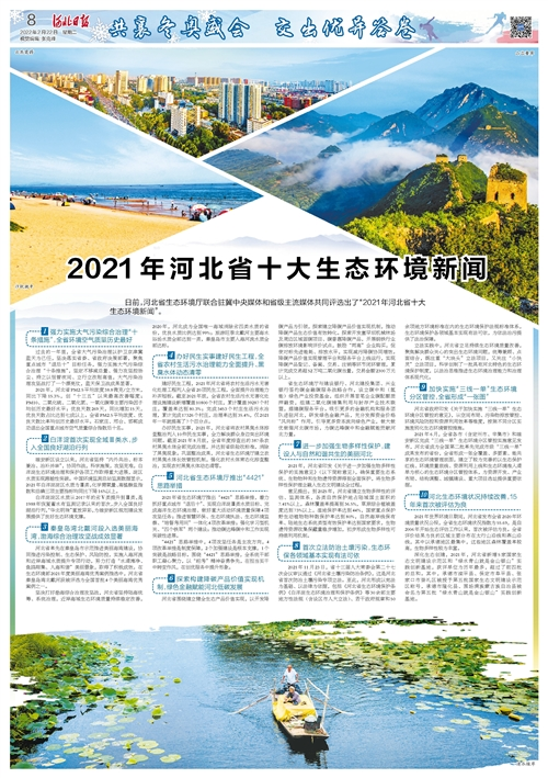 日前,杏彩(中国)官方网站 联合驻冀中央媒体和省级主流媒体共同评选出了“2021年河北省十大生态环境新闻”。