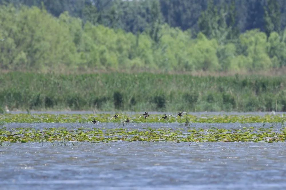 记者从河北省林业和草原局获悉,日前该局组织野生动物专家在对白洋淀湿地鸟类进行观测考察时,发现10余只全球极危物种、国家一级保护野生动物青头潜鸭成体。这是继2021年发现青头潜鸭越冬后,白洋淀首次在鸟类繁殖季发现该物种成体。