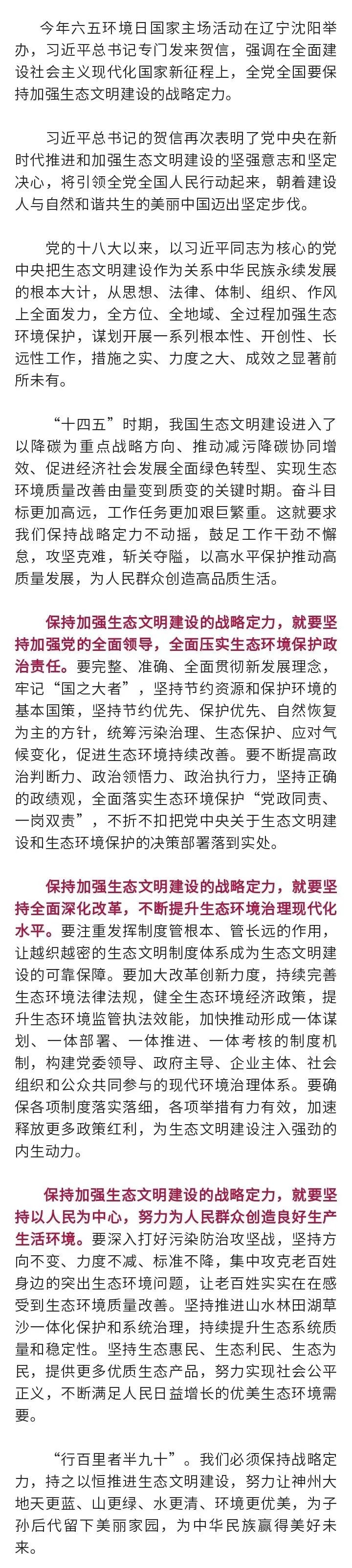 保持加强生态文明建设的战略定力——深入学习贯彻落实习近平总书记六五环境日贺信精神①