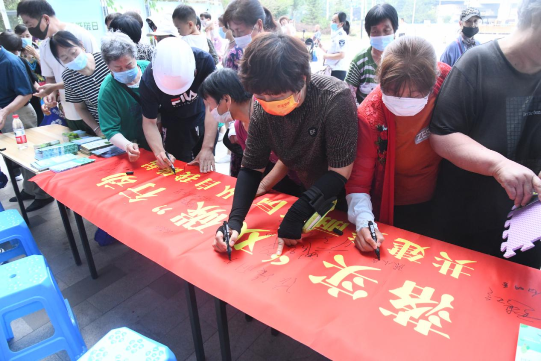 图为市民在“落实‘双碳’行动,共建美丽家园,从自我做起”倡议横幅上签名。