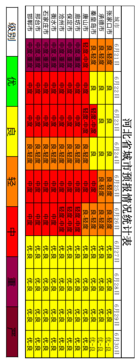 经河北省生态环境应急与重污染天气预警中心与中国环境监测总站、省气象灾害防御和环境气象中心联合会商,预计2022年6月下旬(21日~30日),受偏南风和高温天气影响,天空云量较少,21~23日、25~26日,我省中南部地区可能出现大范围臭氧中度及以上污染过程。27日起,高空受深厚低涡东移影响,预计我省可能出现较长时间大范围降水过程,温度降低,本轮臭氧污染过程将趋于结束。