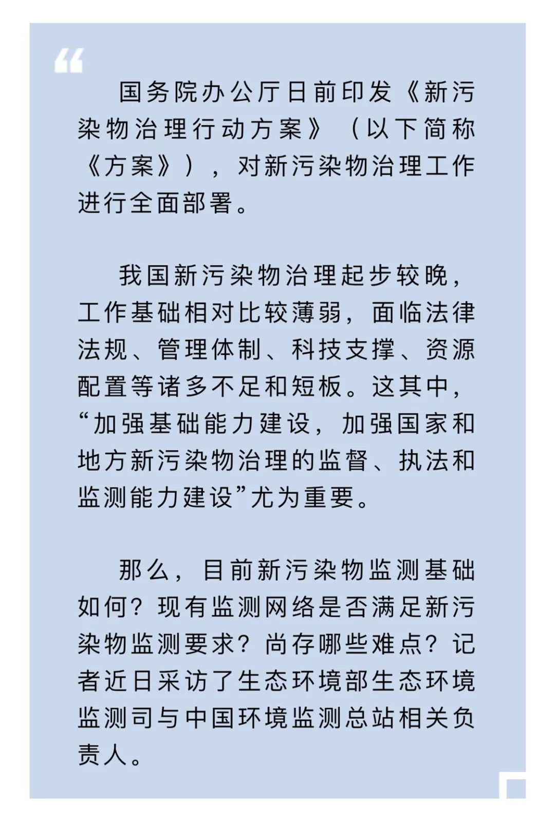 中国环境报:现有生态环境监测网络能否满足在重点地区、行业、典型工业园区开展新污染物监测试点工作