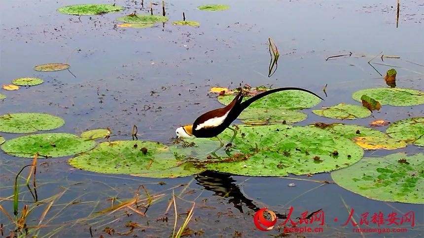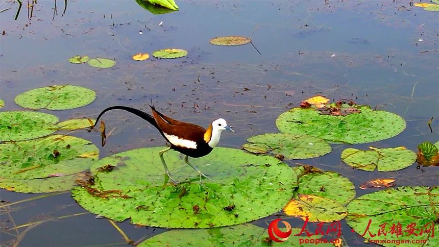 近日,工作人员在雄安新区白洋淀鸟类监测中发现了国家二级保护动物水雉的踪迹。这成为白洋淀生态环境持续改善的又一佐证。