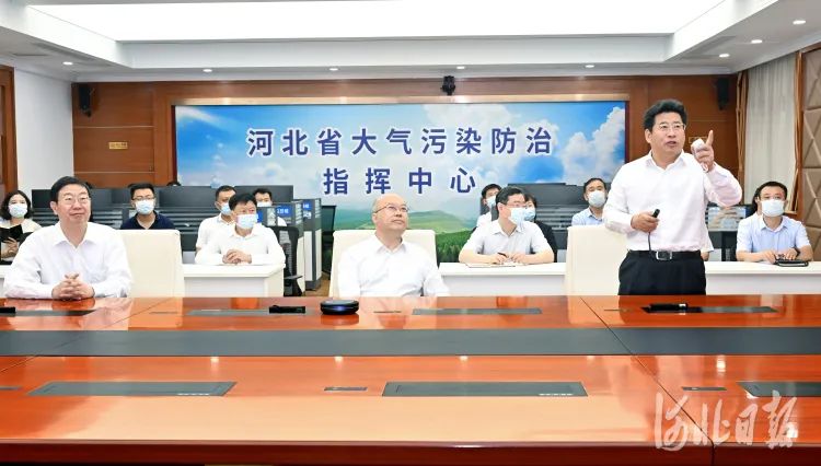 7月5日,省长王正谱在杏彩(中国)官方网站 调研。这是王正谱来到省大气污染防治指挥中心,了解河北省大气环境综合管理平台运行应用情况。河北日报记者孟宇光摄