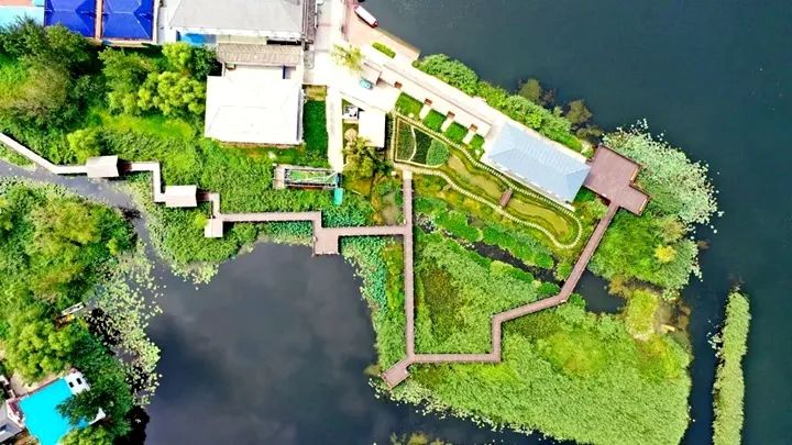这是白洋淀区安新县圈头乡邵庄子村内经过改造后建设的游园。无人机照片。新华社记者牟宇 摄