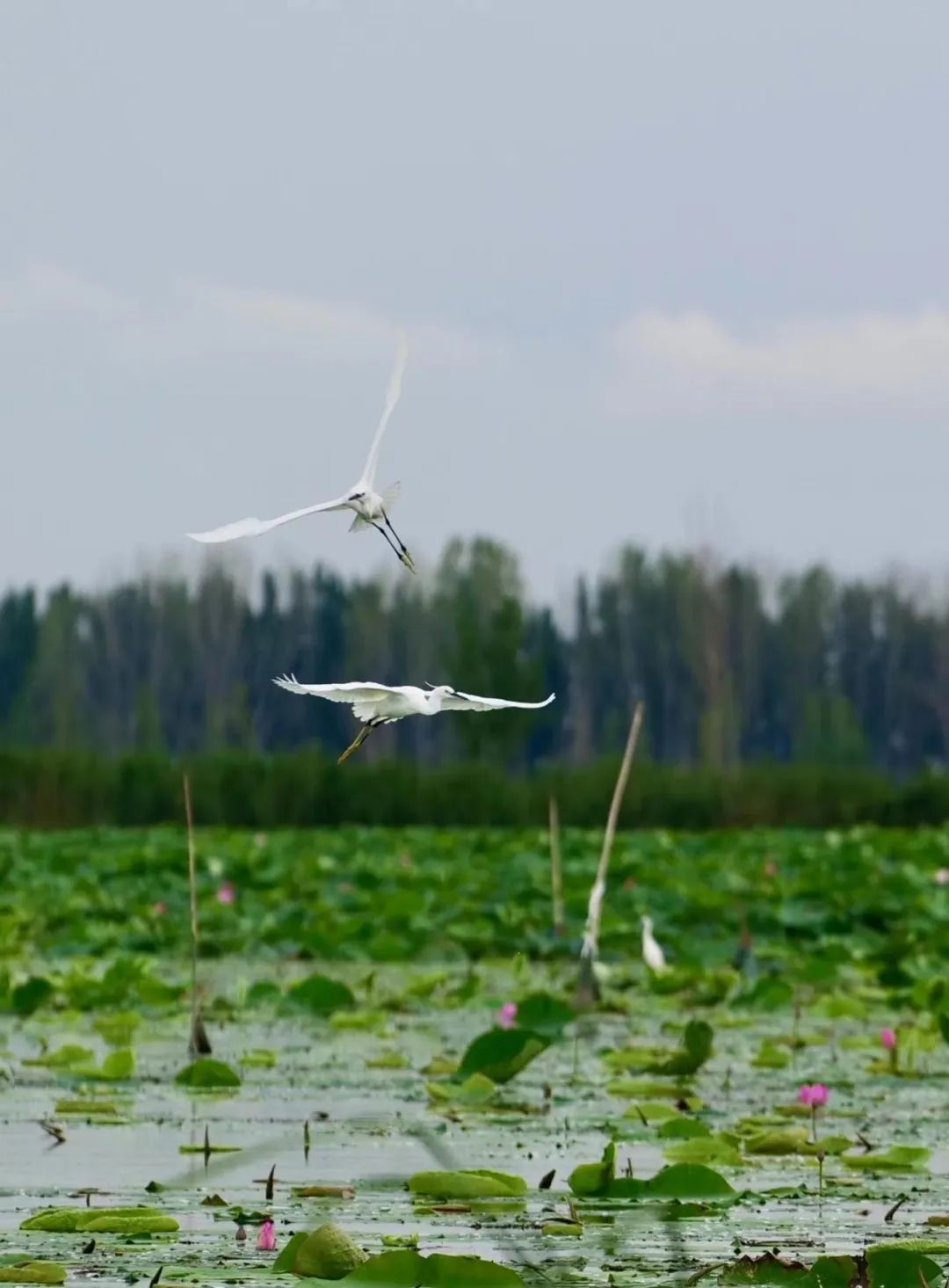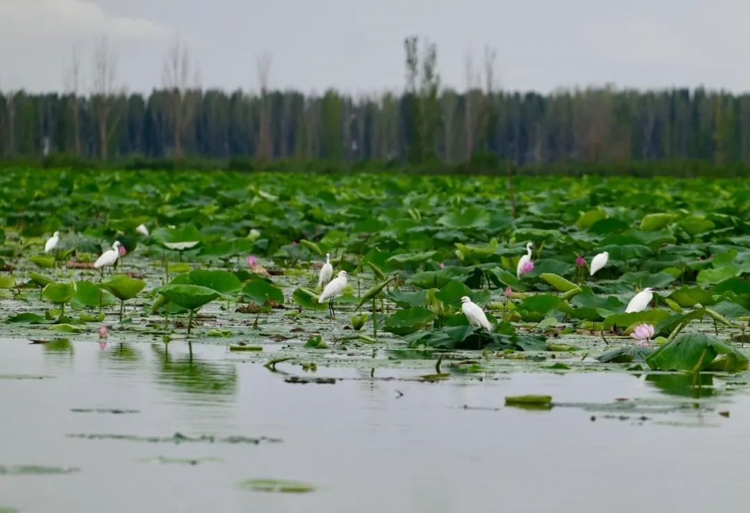 2022年7月10日,图为白洋淀上的白鹭群。河北日报记者李东宇摄