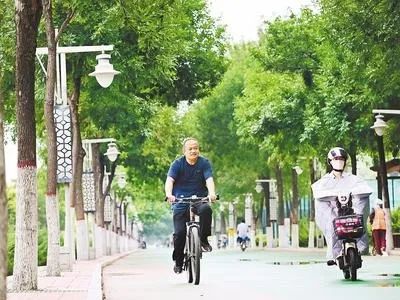 7月11日,衡水市区滏阳河畔,市民在绿树成荫的甬路上骑行。本组图片由河北日报记者焦磊摄