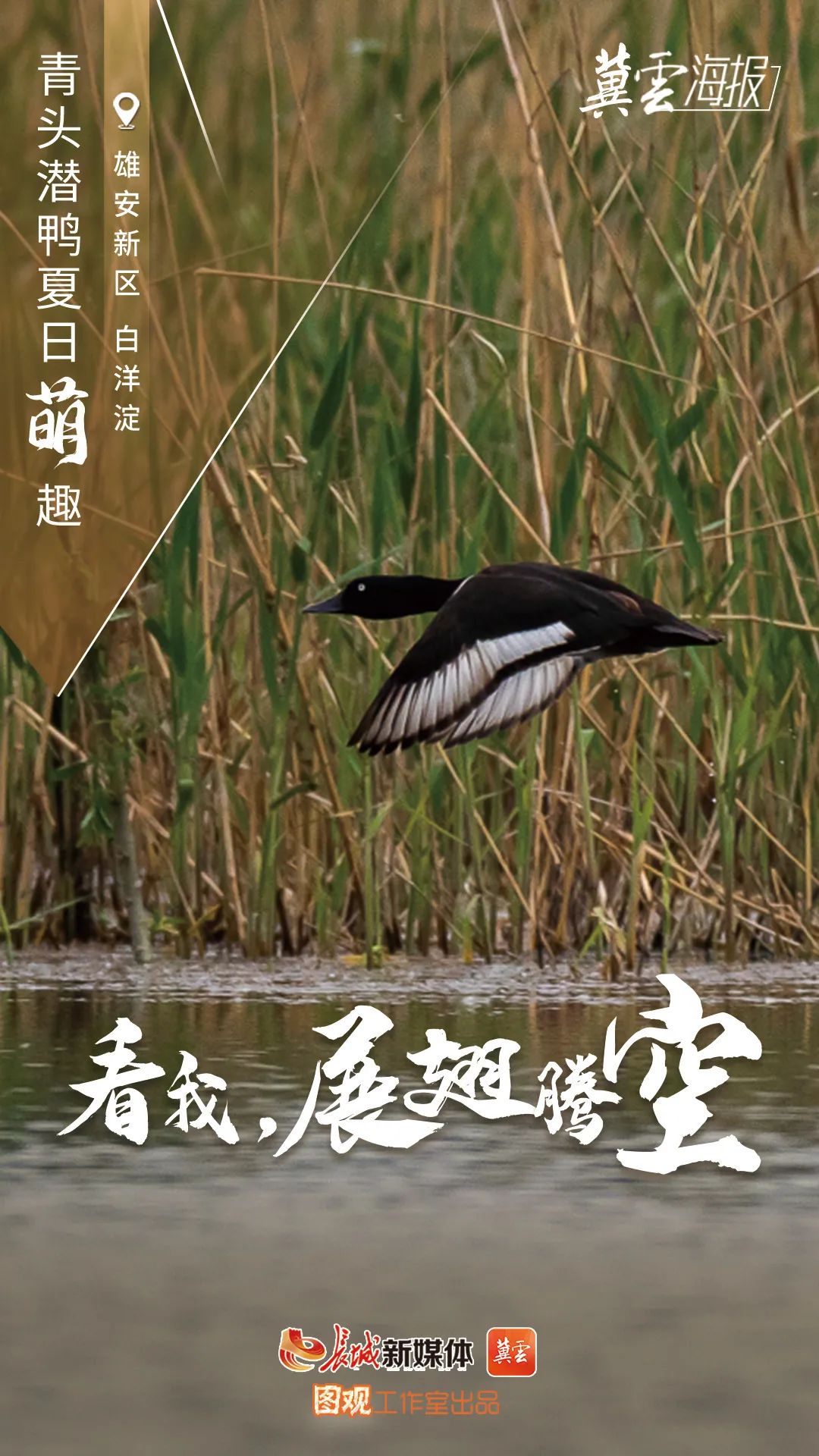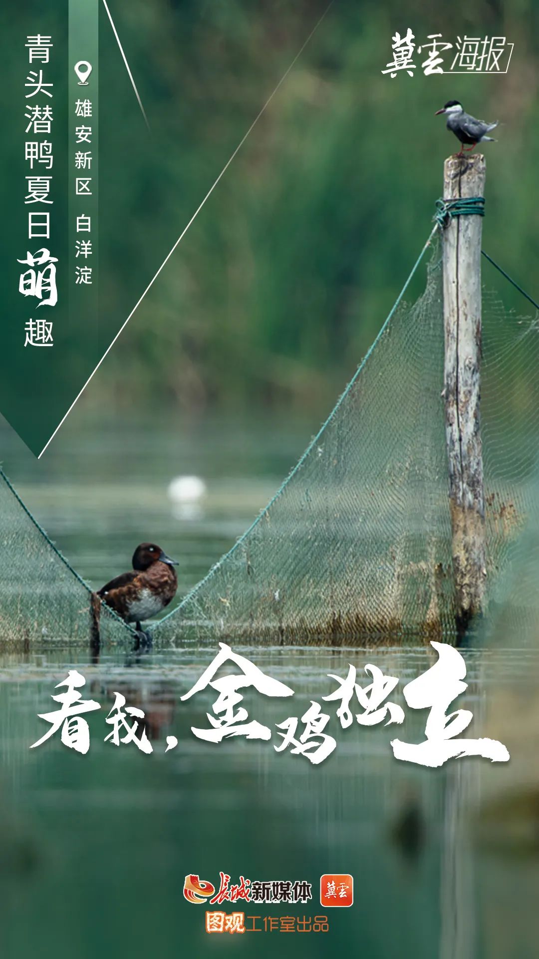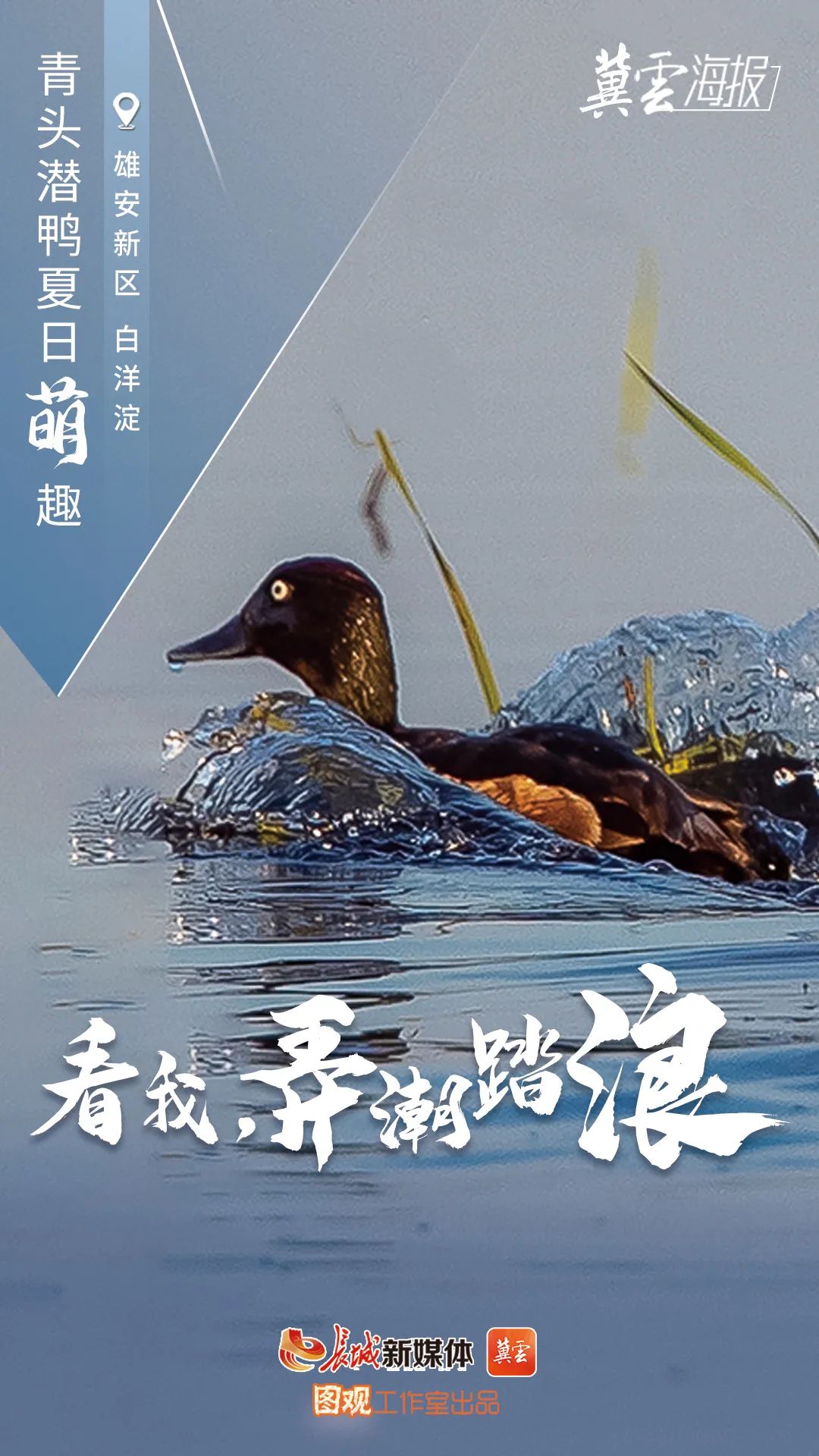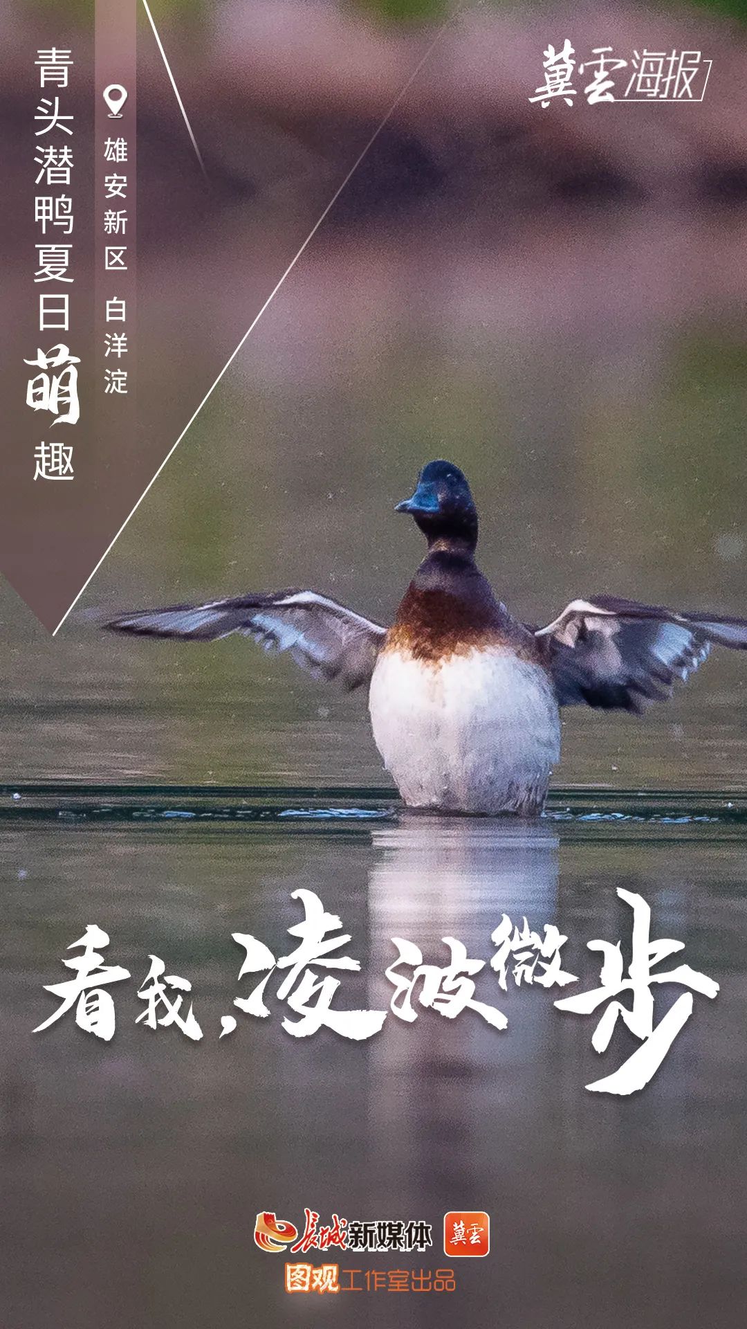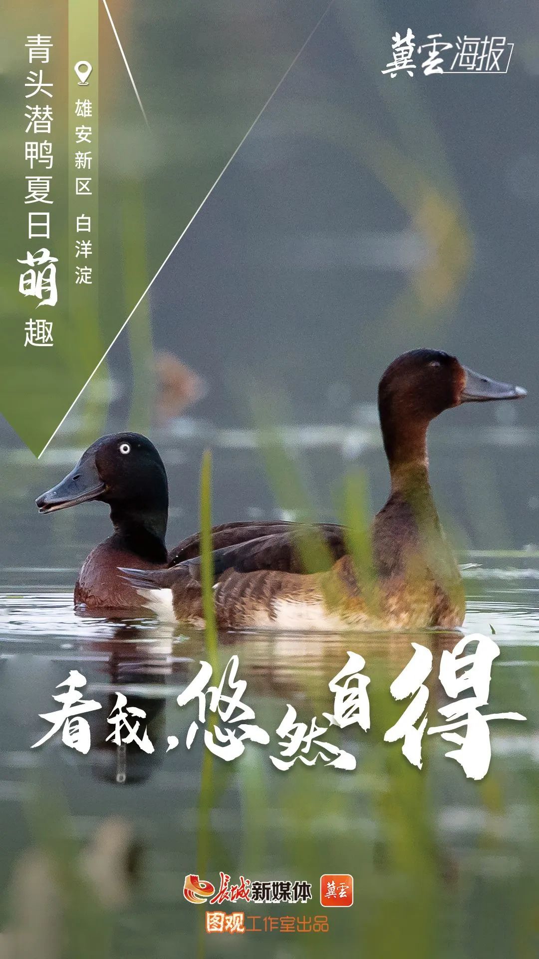 创意海报丨白洋淀青头潜鸭夏日萌趣 来源:科技与宣传教育处 时间:2022-07-29