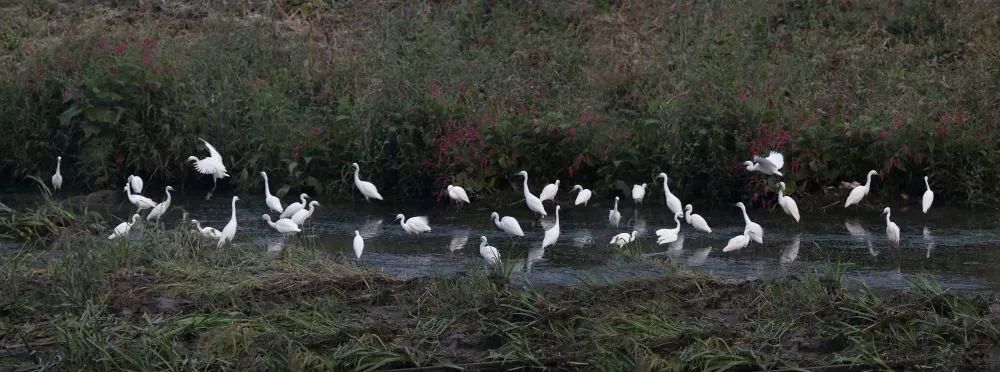 清晨,走进邯郸市峰峰矿区滨湖湿地,平静的河滩上数十只白鹭嬉戏捕鱼。今年74岁的摄影爱好者杨元杰时不时按下快门,“它们或低头捕鱼,或高声歌唱,别有一番情趣。沿着滏阳河源头走,还会发现许多叫不出名字的水鸟,这些年我拍过的就有几十种。”杨元杰说。