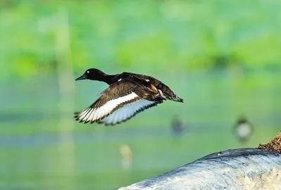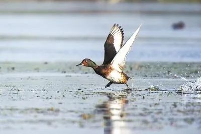 青头潜鸭在白洋淀水域飞翔。河北日报记者李东宇摄