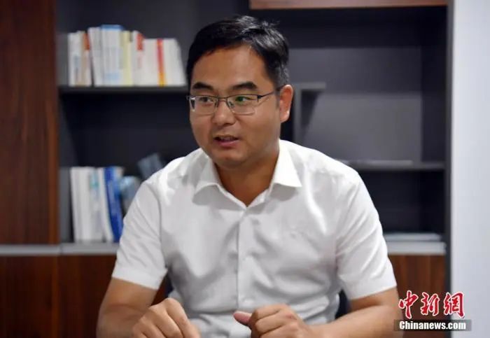 图为7月22日,中国雄安集团生态建设投资有限公司工程总监朱晓磊接受中新社记者采访。 中新社记者韩冰摄